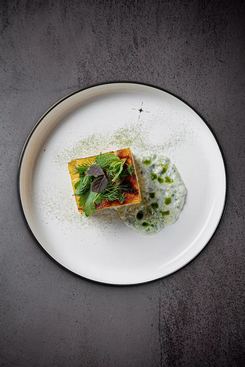 Паштет из куриной печени с румяной булочкой-бриошь и чёрной смородиной