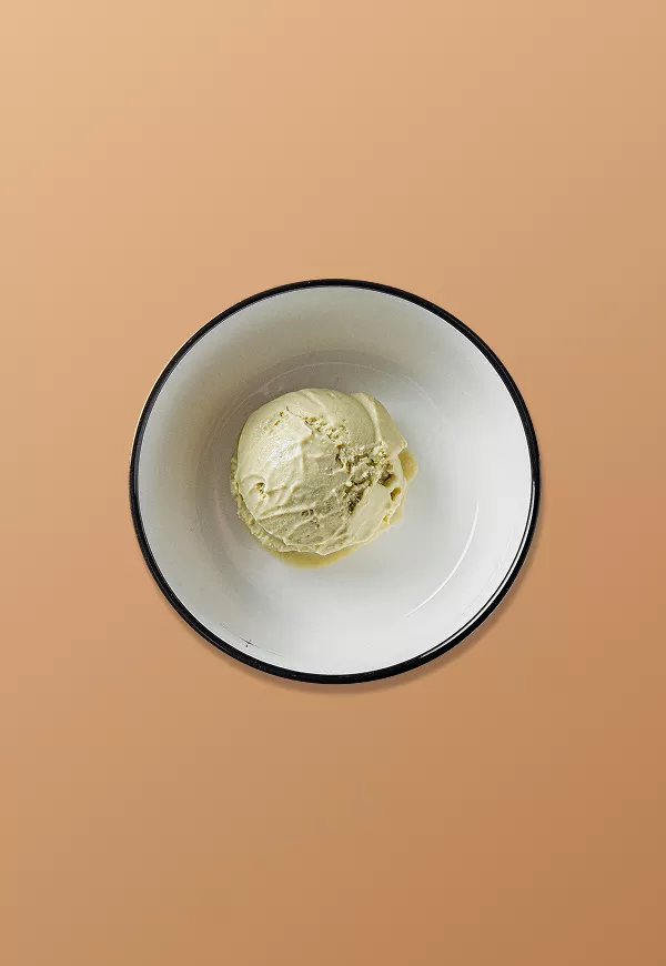 Яблоко, орех кедровый, тростниковый сахар, постное сливочное масло, розмарин, сорбет юдзу.
